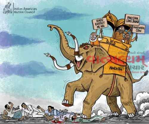 બહુમતી સમુદાયની ધાર્મિક લાગણીઓને પંપાળીને અને લઘુમતી સમુદાય પ્રત્યે નફરત ફેલાવવાથી સત્તા મળે છે અને ટકે છે, આ ‘ગુજરાત મોડેલ’નું રહસ્ય છે ! નફરતના રસાયણનો નશો એવો છે કે બેરોજગારી/ મોંઘવારી/ આર્થિક બિમારી/ રુપિયાનું અવમૂલ્યન વગેરે પ્રશ્નો તુચ્છ લાગે છે ! આ નશો એવો છે કે લિટર પેટ્રોલનો ભાવ 500 રુપિયા થાય તો પણ ચિંતા થતી નથી ! 27 ઓગસ્ટ 2022ના રોજ વડાપ્રધાને અમદાવાદમાં અટલ બ્રિજનું ઉદ્ઘાટન કર્યું, ત્યારે એક વૃધ્ધ વ્યક્તિએ કહ્યું હતું : ‘આ સાહેબ જ કરી શકે, બીજું કોઈ કરી શકે જ નહીં. આની સામે IIT/ IIM કંઈ જ નથી, એ બધું તો કચરો છે !’ આ એવો નશો છે કે કોંગ્રેસે બનાવેલ ઉચ્ચ શિક્ષણ સંસ્થાઓ કચરો લાગે છે !rs [કાર્ટૂન સૌજન્ય : Mir Suhail તથા સતિષ આચાર્ય]