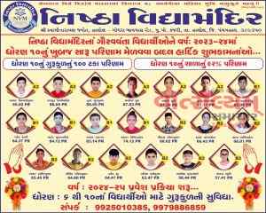 હાલોલ ગોધરા બાયપાસ રોડ પર આવેલ સ્વામીનારાયણ નિષ્ઠા વિદ્યા મંદિર ગુરુકુળ નું ૧૦૦ ટકા પરિણામ