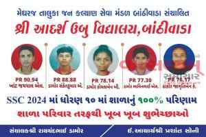 મેઘરજ : શ્રી આદર્શ ઉબુ વિધ્યાલય, બાંઠીવાડા નું SSC 2024 માં 100 ટકા પરિણામ