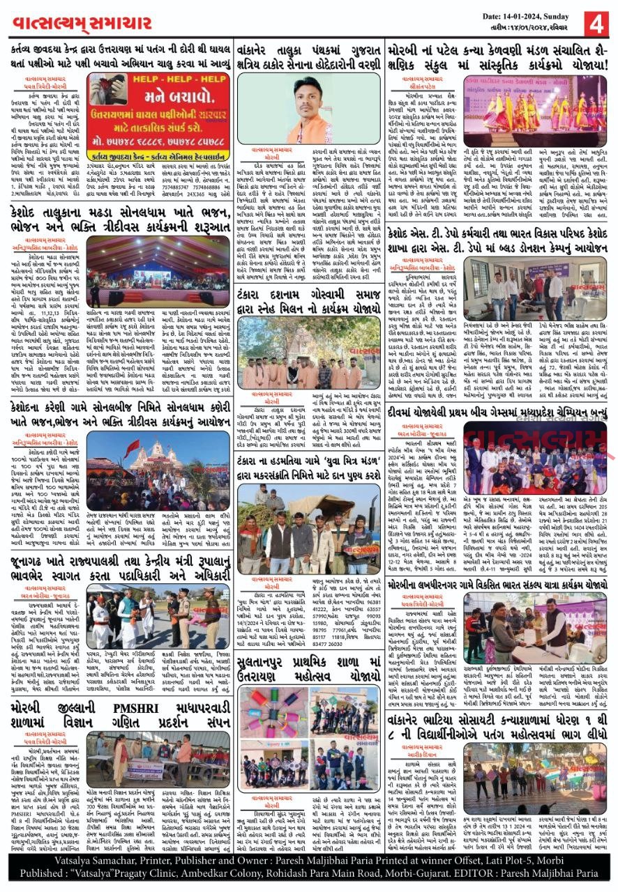 Vatsalyam Samachar E-PAPER વાત્સલ્યમ્ / સમાચારની 14/01/2024 ની PDF આવૃત્તિ
