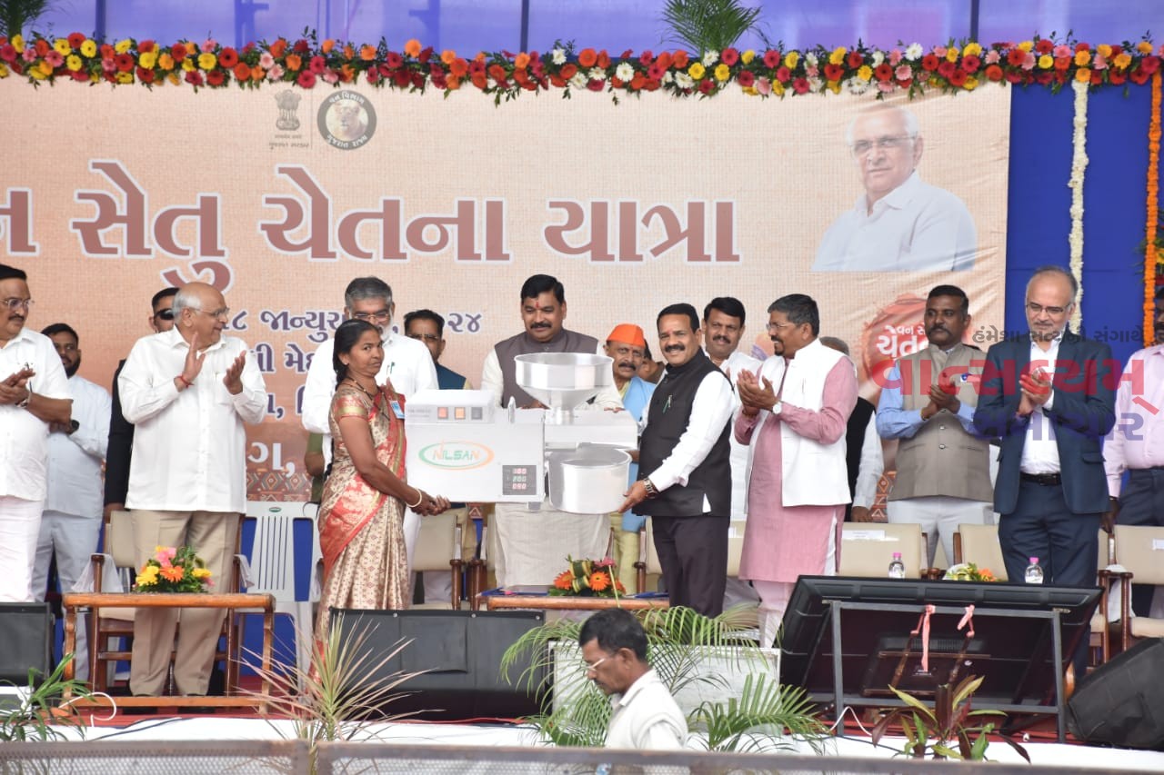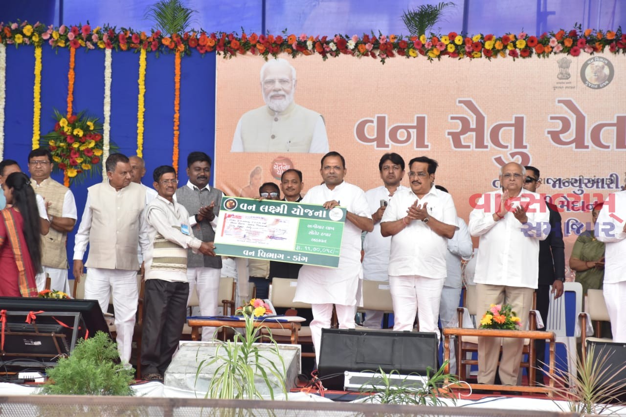 નવસારી જિલ્લાના વાંસદા ખાતેથી ‘વન સેતુ ચેતના યાત્રા’ના શુભારંભ સાથે મુખ્યમંત્રી શ્રી ભૂપેન્દ્રભાઈ પટેલે વન ધન વિકાસ, વનલક્ષ્મી યોજના, માલિકી યોજના સહિત વન વિભાગની વિવિધ યોજનાકીય લાભો, સહાયના ચેકોનું વિતરણ કર્યું હતું.
