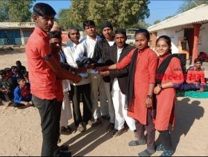 લાખણી ના દેતાલ ડુવા ગામે ઉતરાયણ પર્વ નિમિત્તે વિદ્યાર્થીઓ ગૌ દાન અને પતંગોત્સવ કાર્યક્રમ યોજાયો