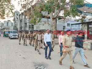 હાલોલ નગરના વિવિધ વિસ્તારોમાં આજરોજ હાલોલ ટાઉન પોલીસ તેમજ એસઆરપી ગ્રુપના જવાનોની ફ્લેગ માર્ચ યોજાઈ હતી.તા.૧૧ એપ્રિલ ગુરૂવાર ના રોજ મુસ્લિમ સમુદાયના પવિત્ર તહેવાર એવા રમજાન ઇદ નાં અનુસંધાને તકેદારીના ભાગરૂપે પોલીસ દ્વારા ફૂટ પેટ્રોલિંગ કરવામાં આવી હતી.રમઝાન ઇદના તેહવારની ઉજવણી શાંતી પૂર્ણ માહોલમાં થાય અને કાયદો વ્યવસ્થા જળવાઈ રહે તે માટે હાલોલ ટાઉન પોલીસ દ્વારા આજે નગરના વિવિધ વિસ્તારો જેવાકે મંદિર ફળીયા,બોમ્બે હાઉસ, મેન બજાર,કસ્બા,લીમડી ફળિયા તેમજ વિવિધ વિસ્તારોમાં ફૂટ પેટ્રોલિંગ યોજાઇ હતી જેમાં હાલોલ ટાઉન પીઆઈ કે.એ.ચૌધરી એસઆરપી ગ્રુપના જવાનો અને ટાઉન પોલીસ મથકના પોલીસ જવાનો સાથે ફ્લેગ માર્ચ યોજાઈ હતી.