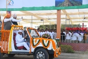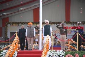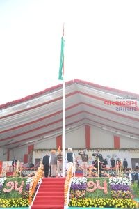 રાજ્યપાલશ્રી આચાર્ય દેવવ્રતે મુખ્યમંત્રીશ્રી ભૂપેન્દ્ર પટેલ ની ઉપસ્થિતિમાં રાષ્ટ્રધ્વજ ફરકાવીને સલામી આપી