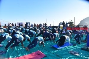 જૂનાગઢ : રમત ગમત યુવા અને સાંસ્કૃતિક વિભાગ દ્વારા ગુજરાત રાજ્ય યોગ બોર્ડ અને સ્પોર્ટ્સ ઓથોરીટી ઓફ ગુજરાત, ગાંધીનગર દ્વારા મહાનગરપાલિકાકક્ષાનો સૂર્ય નમસ્કાર કાર્યક્રમનું જૂનાગઢ જીલ્લા ખાતે પાંચ અલગ અલગ આઈકોનિક સ્થળ દામોદર કુંડ, ગીરનાર હિલ, ભવનાથ તળેટી, ઉપરકોટ અને બહાઉદ્દીન કોલેજમાં લાઈવ પ્રસારણ અને સૂર્ય નમસ્કાર કાર્યક્રમનું  આયોજન કરવામાં આવ્યું હતું.