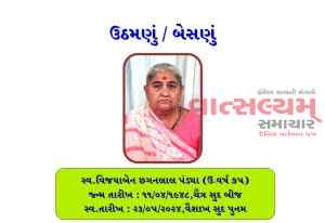 MORBI:મોરબી વિજયાબેન છગનલાલ પંડ્યાનું દુઃખદ અવસાન-બેસણું- ઉઠમણું