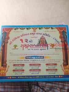 સમૂહ લગ્ન ના શુભ પ્રસંગો :મંડપ મુહર્ત તારીખ 10 ના રોજ સવારે 8:00 કલાકે ,જાન આગમન સાંજે 5:00 કલાકે, સામૈયા સાંજે 6:00 કલાકે ,હસ્તમેળા સાંજે 7:00 કલાકે તથા કન્યા વિદાય રાત્રે 9:30 કલાકે યોજાશે.