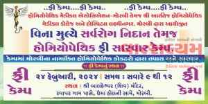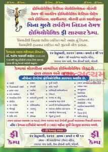 24મી ફ્રેબ્રુઆરીએ વિનામૂલ્યે યોજાનાર સર્વરોગ નિદાન સારવાર કેમ્પમાં નામકીત હોમિયોપેથીક ડોક્ટરો સારવાર આપશે