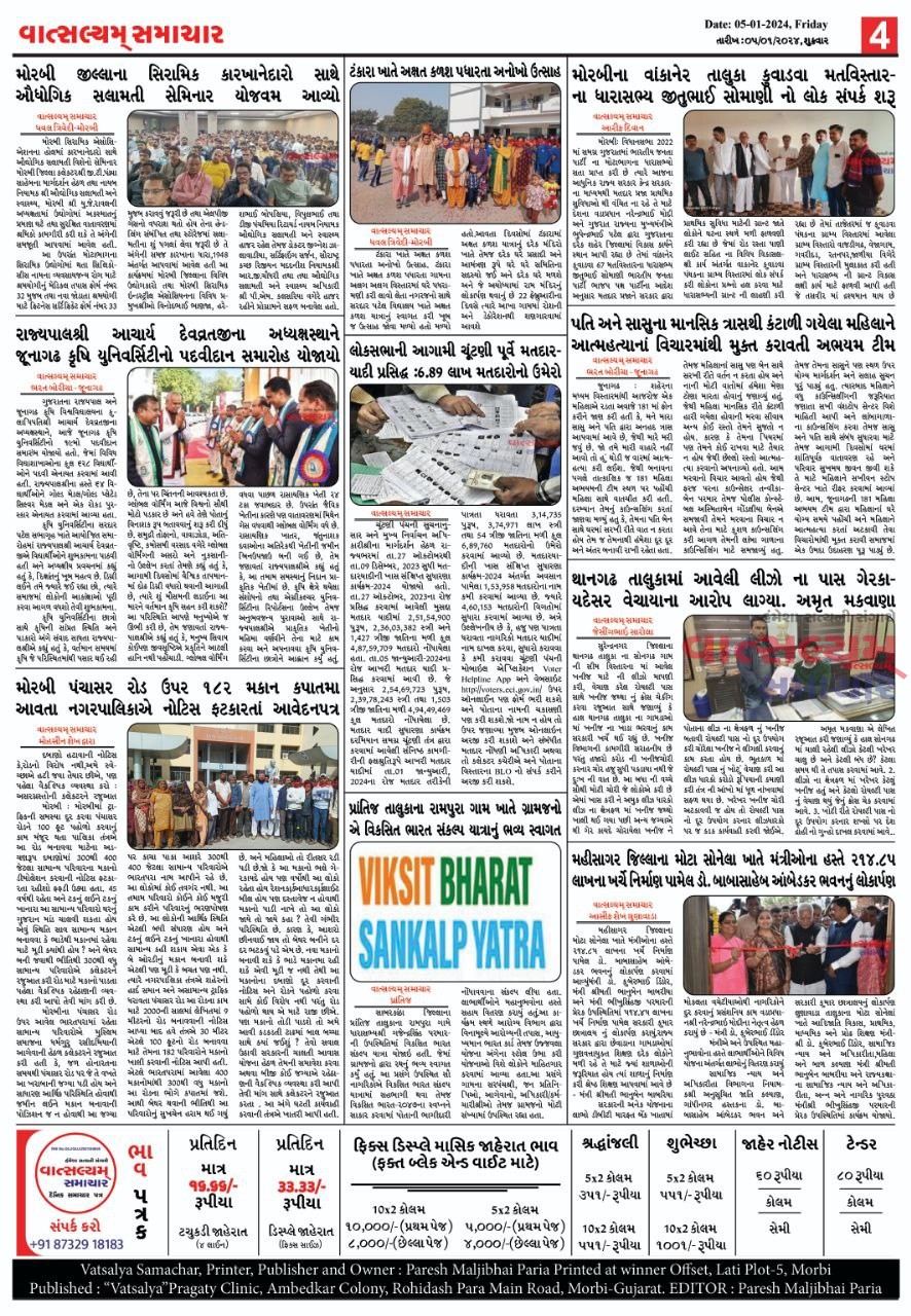 Vatsalyam Samachar E-PAPER / વાત્સલ્યમ્ સમાચારની 05/01/2024 ની PDF આવૃત્તિ