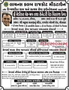 ટંકારા ના મિતાણા ગામે બહુચરાજી મંદિરે ફ્રી મેડીકલ કેમ્પનુ આયોજન