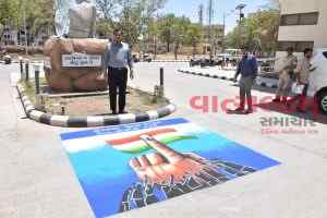MORBI:મોરબી કલેકટર કચેરીના પ્રાંગણમાં શિક્ષકોએ બનાવી મતદાન જાગૃતિ અંગે વિશાળ રંગોળી