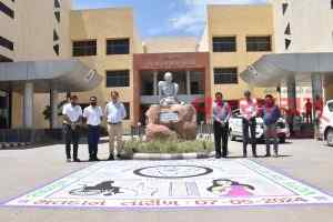 આપણું લક્ષ ૧૦૦ ટકા મતદાનની થીમ પર આ રંગોળી શિક્ષકો દ્વારા બનાવવામાં આવી છે. જિલ્લા કલેકટરશ્રી કે.બી.ઝવેરી, અધિક કલેકટરશ્રી એસ.જે.ખાચર, નાયબ ચૂંટણી અધિકારીશ્રી કુલદીપસિંહ વાળા સહિતનાએ રંગોળી નિહાળીને લોકોને મતદાન અવશ્ય કરવા સંદેશો પાઠવ્યો તેમજ રંગોળી બનાવનાર શિક્ષકોને પ્રોત્સાહન પૂરું પાડ્યું હતું.