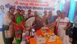MORBI:મોરબી શ્રી રામજી મંદિરના લાભાર્થે આઓજીત શ્રીમદ ભાગવત સપ્તાહ જ્ઞાનયજ્ઞમા જલારામ મંદિરના અગ્રણીઓનું સન્માન કરાયું