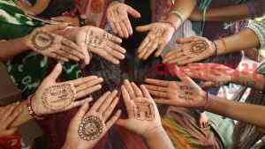 નર્મદા જિલ્લાની આંગણવાડીઓમાં બહેનોએ હાથમાં લગાવી “લોકશાહીના પર્વની મહેંદી”