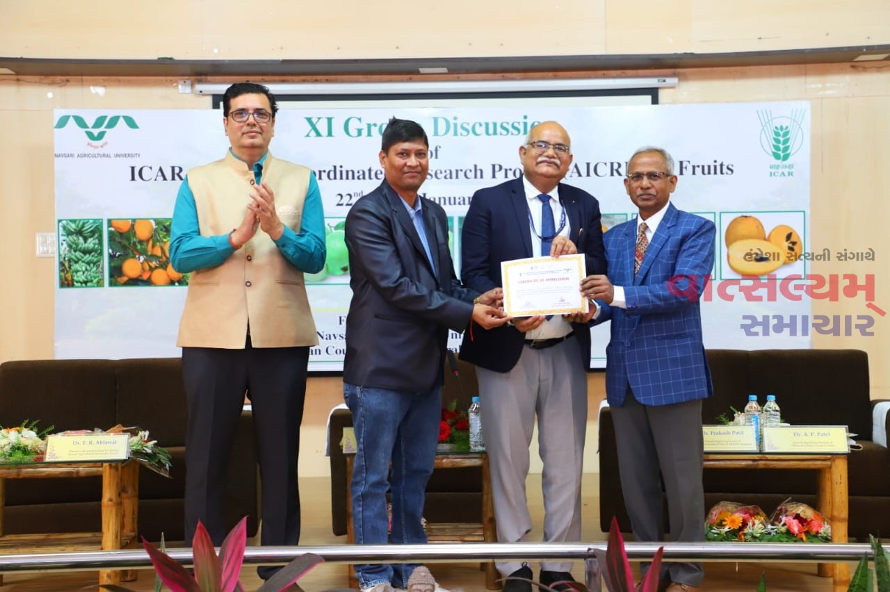 નવસારી જીલ્લાના ગણદેવી તાલુકામાં આવેલી નવસારી કૃષિ યુનિવર્સિટીના ફળ સંશોધન કેન્દ્રના વડા ડો. અંકુર પટેલ જણાવે છે કે ચાલુ વર્ષ ૨૦૨૩-૨૪ માટે ICAR-AICRP on Fruits (અખિલ ભારતીય સંકલિત સંશોધન યોજના ફળની ૧૧મી વાર્ષિક ગ્રૂપ ડિસકશન મીટિંગ નવસારી કૃષિ યુનિવર્સિટીના યજમાન પદે તા.૨૨મી જાન્યુયારીથી ૨૫મી જાન્યુઆરી સુધી યોજાયેલ હતી. જેમાં આખા ભારત દેશના તમામ રાજયોના કુલ ૪૯ જેટલા ફળ સંશોધન કેન્દ્રના આશરે ૨૦૦ જેટલા વૈજ્ઞાનિકોએ ભાગ લીધો હતો.