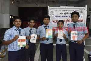 મતદાન જાગૃતિ ઝુંબેશ હેઠળ નાગરિકોને પોસ્ટર ડિઝાઈનના માધ્યમથી પ્રેરક સંદેશો પાઠવતા વિદ્યાર્થીઓ