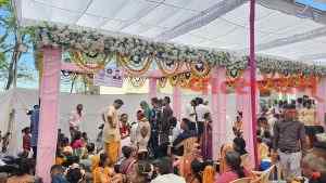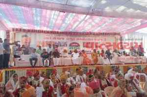 હાલોલના કંજરી ગામે ધારાસભ્ય અને સંતો મહંતોની ઉપસ્થિતિમાં સર્વ સમાજ સમૂહ લગ્નોત્સવ યોજાયો,27 નવ દંપતીઓએ પ્રભુતામાં પગલાં પાડયા
