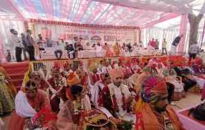 હાલોલ તાલુકાના કંજરી ગામે સૌ પ્રથમ વતખ સર્વ સમાજ સમૂહ લગ્નોત્સવ કંજરી કુમારશાળા ખાતે હાલોલ વિધાનસભાના ધારાસભ્ય જયદ્રથસિંહજી પરમાર તેમજ કંજરી રામજી મંદિરના મહંત શ્રી રામશરણ દાસજી મહારાજ તેમજ અન્ય સંતો મહંતોની પ્રેરક ઉપસ્થિતિમાં ધામધૂમથી યોજાયો હતો.આ શુભ પ્રસંગે વિશ્વ હિંદુ પરિષદના કેન્દ્રીય ધર્મચાર્યા પ.પુ.અખિલેશ્વર દાસજી મહારાજ પ્રભુતામાં પગલાં પાડનાર નવદંપતીઓને આશીર્વાદ આપવા માટે ખાસ ઉપસ્થિત રહ્યા હતા.યોજાયેલ સમૂહ લગ્નમાં ૨૭ નવ દંપતીઓએ પ્રભુતામાં પગલાં પાડયાં હતાં.હાલોલ તાલુકાના કંજરી ગામે રામજી મંદિર ના મહંત શ્રી રામશરણ દાસજી મહારાજ ની પ્રેરણા ને આશીર્વાદ થી સ્થાનિક ધારાસભ્ય અને રાજવી પરિવારના જયદ્રથસિંહ પરમાર, કંજરી સ્ટેટ યુવરાજ મયુરધ્વજસિંહજી પરમાર દ્વારા કંજરી ગામે સૌ પ્રથમ વખત સર્વ સમાજ સમૂહ લગ્નોત્સવ નું સુંદર આયોજન કરવામાં આવ્યું હતુ. જેમાં ૨૭ નવ દંપતીઓએ પ્રભુતામાં પગલાં પાડયાં હતાં આજે યોજાયેલ સમૂહ લગ્નમાં સવારે આઠ કલાકે મંડપ મ્હોર્ત તેમજ ગણેશ સ્થાપના કરવામાં આવી હતી સવારે નવ કલાકે ગ્રહ શાંતિ કરવામાં આવી હતી જ્યારે ૨૭ વરરાજાની જાણ નું આગમન થતાં સ્વાગત કરવામાં આવ્યું હતુ જ્યારે ૧૧ કલાકે વાજતે ગાજતે ડીજે ના તાલે ૨૭ વરરાજા નો સમૂહ વરઘોડો નીકળતા કંજરી ગામ સહિત હાલોલ,ઘોંઘબા અને જાંબુઘોડા તેમજ અન્ય તાલુકામાંથી આવેલા લોકો વરઘોડામાં જોડાયા હતા.આ વરઘોડો કંજરી કુમાર શાળા ખાતે પહોંચતા રાજવી પરિવાર તરફથી તેઓનું સ્વાગત કરવામાં આવ્યું હતુ.સમૂહ લગ્ન ભવ્ય થી ભવ્ય સામિયાના માં અલગ અલગ ૨૭ ચૌરી માં કન્યા પધરાવી શાસ્ત્રોક વિધિવત રીતે ૨૭ નવ દંપતીઓનાં લગ્ન સંપન્ન થયા હતા યોજાયેલ સમૂહ લગ્નમાં અસંખ્ય લોકો ઉપસ્થિત રહ્યાં હતા જ્યારે લગ્ન પ્રંસંગે ઉપસ્થિત સંતો મહંતોઓએ નવ દંપતીઓને પોતાનું જીવન સુખમય રીતે પસાર થાય તેવા આશીર્વચન આપ્યા હતા જ્યારે ૨૭ કન્યાઓને લગ્ન મહોત્સવમાં ૫૧ વસ્તુઓની કર્યાવર આપી વિદાય આપવામાં આવી હતી.