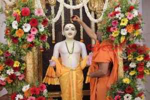 Rajkot: BAPS સ્વામિનારાયણ મંદિર, કાલાવડ રોડ ખાતે ભગવાન શ્રી સ્વામિનારાયણ અને ભગવાન શ્રી રામના પ્રાગટ્યોત્સવની ઉત્સાહભેર ઉજવણી કરવામાં આવી હતી. જે ઉપક્રમે સવારે ૭:૩૦ થી ૮:૪૫ દરમ્યાન ઠાકોરજીની વૈદિક મહાપૂજાવિધિ યોજાઈ હતી. જેમાં કોઠારી પૂજ્ય બ્રહ્મતીર્થ સ્વામીના અધ્યક્ષ સ્થાને પૂજ્ય વિશ્વેશતીર્થ સ્વામી અને પૂજ્ય અક્ષરકીર્તિ સ્વામીએ ઉપસ્થિત સૌને મહાપૂજા વિધિમાં જોડ્યા હતા. મહાપૂજાવિધિ બાદ સંતોએ ઠાકોરજીને જન્મોત્સવ પર્વે કેસર જલાભિષેક કરી વધાવ્યા હતા.