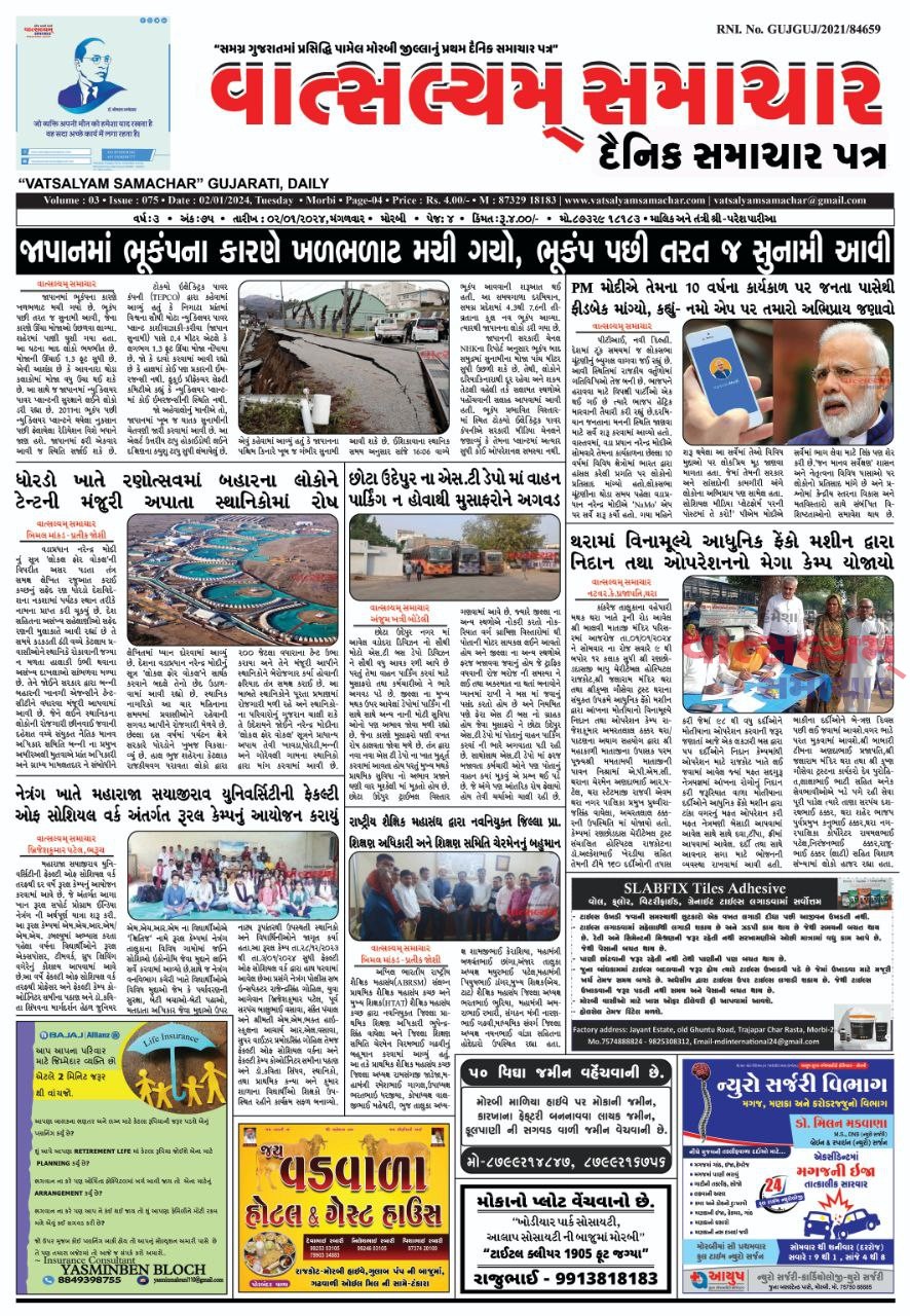 Vatsalyam Samachar E-PAPER / વાત્સલ્યમ્ સમાચારની 02/01/2024 ની PDF આવૃત્તિ