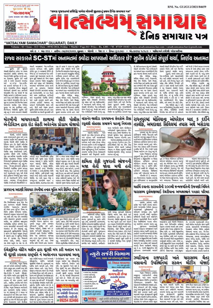 Vatsalyam Samachar E-PAPER વાત્સલ્યમ્ / સમાચારની 09/02/2024 ની PDF આવૃત્તિ