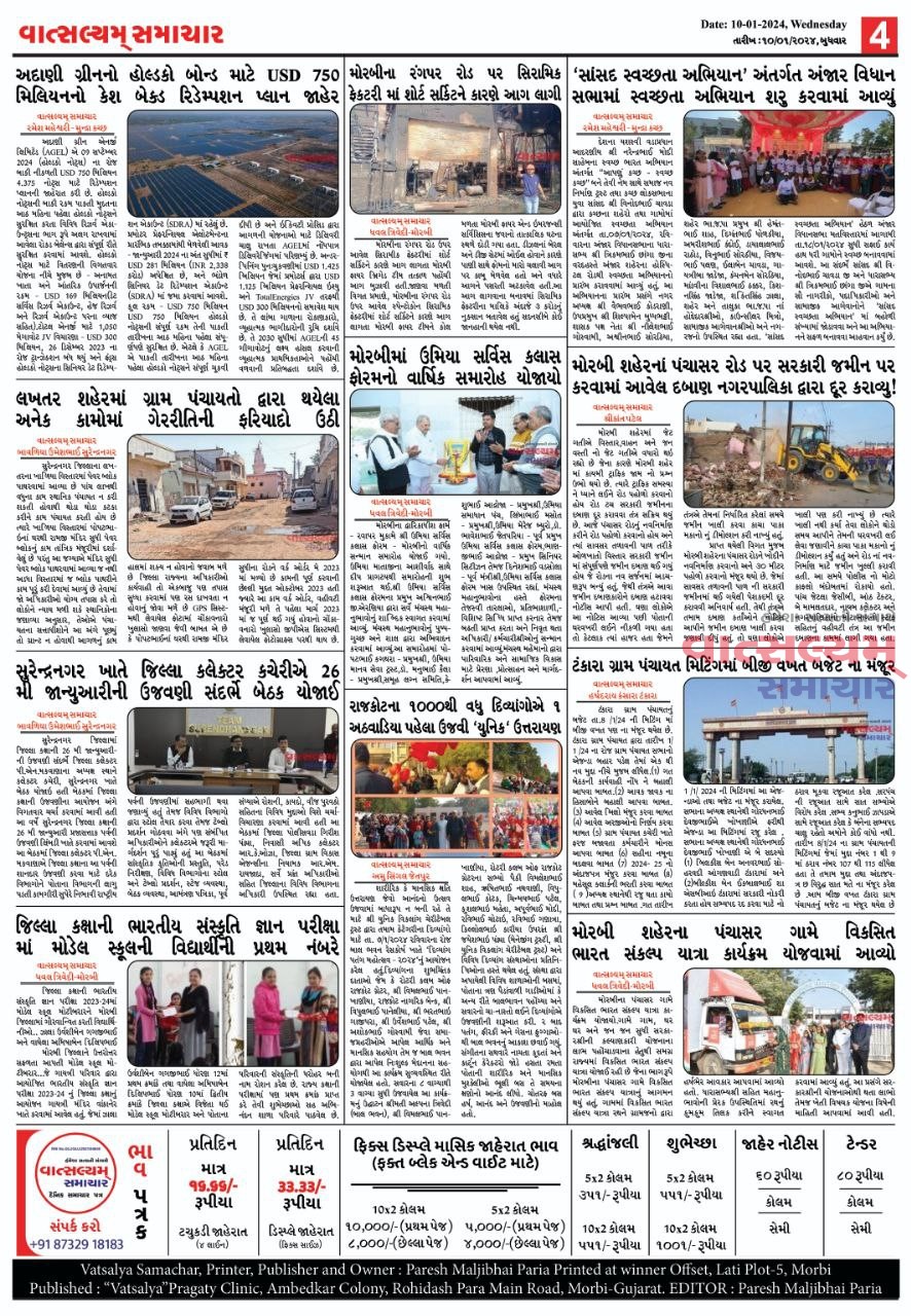 Vatsalyam Samachar E-PAPER વાત્સલ્યમ્ / સમાચારની 10/01/2024 ની PDF આવૃત્તિ