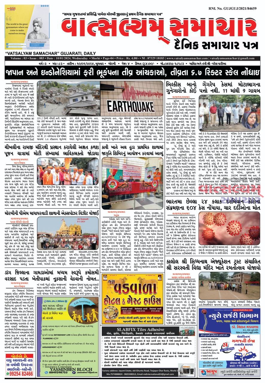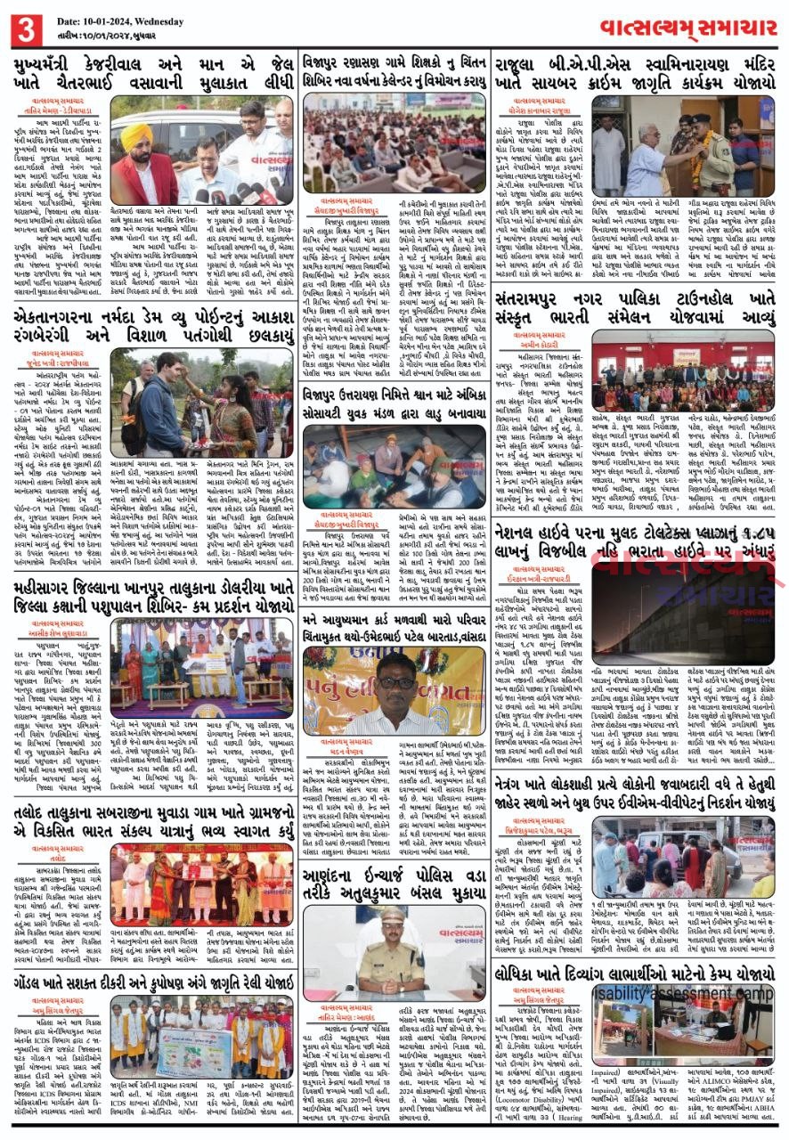 Vatsalyam Samachar E-PAPER વાત્સલ્યમ્ / સમાચારની 10/01/2024 ની PDF આવૃત્તિ
