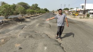 સારસા થી રાજપારડી સુધી રસ્તા ઉપર પડેલ ખાડા થી વાહન ચાલકો ને અકસ્માત નો ભય.