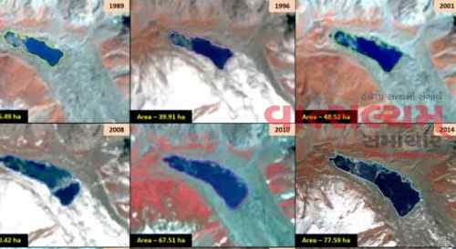 ISROએ સેટેલાઇટ ઇમેજ હિમાચલ પ્રદેશમાં 4,068 મીટરની ઉંચાઇ પર સ્થિત ગેપંગ ઘાટ ગ્લેશિયલ લેકમાં 1989થી 2022 વચ્ચે 36.49 હેક્ટરથી 101.30 હેક્ટરનું 178 ટકા વિસ્તાર બતાવવામાં આવ્યો છે. દર વર્ષે લગભગ 1.96 હેક્ટરનો વધારો થયો છે.