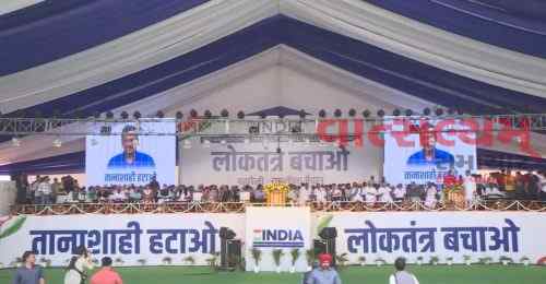 દિલ્હીના રામલીલા મેદાનમાં 28 રાજકીય પક્ષોએ શક્તિપ્રદર્શન કરતાં લોકતંત્ર બચાવો રેલીનું આયોજન કર્યું. આ રેલીમાં 20000થી વધુ લોકોની ભીડ ઉમટી છે. આ રેલીમાં સૌથી ખાસ આમ આદમી પાર્ટી તરફથી કેજરીવાલની પત્ની સુનીતા કેજરીવાલે હાજરી આપી છે. કોંગ્રેસે કહ્યું કે ‘લોકતંત્ર બચાવ રેલી’ નો હેતુ કોઈ વ્યક્તિને બચાવવાનો નથી, પરંતુ બંધારણ અને લોકશાહીને બચાવવાનો છે. રેલીમાં કોંગ્રેસ નેતા સોનિયા ગાંધી, મલ્લિકાર્જુન ખડગે અને રાહુલ ગાંધીએ પણ હાજરી આપી હતી. આ ઉપરાંત ઝારખંડના પૂર્વ મુખ્યમંત્રી હેમંત સોરેનની પત્ની કલ્પના સોરેન, અરવિંદ કેજરીવાલની પત્ની સુનીતા કેજરીવાલ, શિવસેના પ્રમુખ (યુબીટી) ઉદ્ધવ ઠાકરે, સપા સુપ્રીમો અખિલેશ યાદવ, આરજેડી નેતા તેજસ્વી યાદવ, ટીએમસી નેતા ડેરેક ઓ બ્રાયન, ડાબેરી નેતા સીતારામ યેચુરી અને શરદ પવાર સહિત અનેક વરિષ્ઠ નેતાઓ હાજર રહ્યા હતા.