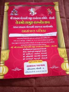મોરબી દશનામ ગોસ્વામી સમૂહલગ્ન સમિતિ દ્વારા તેરમાં સમૂહ લગ્ન 10 મી એ યોજાશે