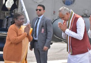રાષ્ટ્રપતિ શ્રીમતી દ્રૌપદી મુર્મુનું આગમન થતાં અન્ય મહાનુભાવો જિલ્લા પંચાયત પ્રમુખ શ્રીમતી હંસાબેન પારેધી, કલેક્ટરશ્રી કિરણ ઝવેરી અને જિલ્લા પોલીસવડાશ્રી રાહુલ ત્રિપાઠી અને આર્ય સમાજના અગ્રણીઓએ માનનીય રાષ્ટ્રપતિનું ઉષ્માભેર સ્વાગત કર્યું